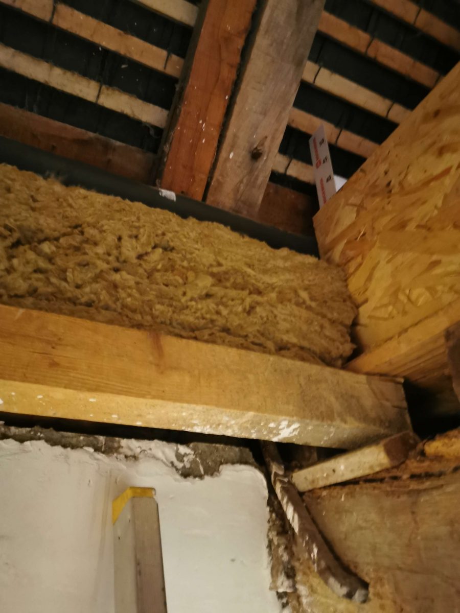 En complément de l’isolation thermique réalisée par soufflage de laine de roche, une zone de stockage a été créée afin de rendre utile la surface isolée.