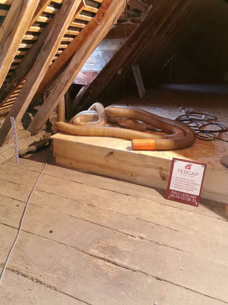 Les techniciens spécialisés de TERCAP viennent de terminer un chantier d’isolation dans les combles perdus d’une maison de Simacourbe dans le Béarn.