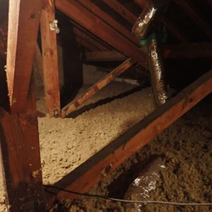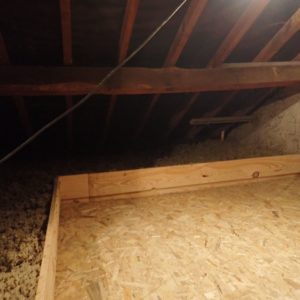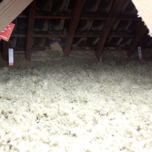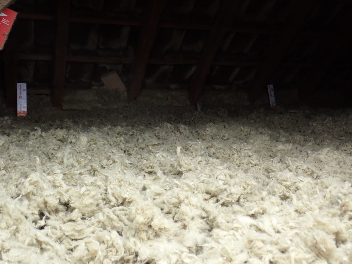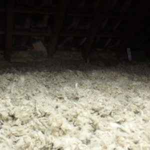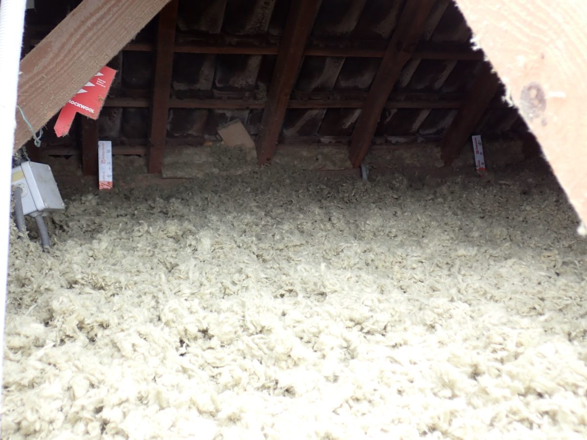 Les techniciens spécialisés ont soufflé de la laine de roche dans les combles perdus pour isoler la maison et réaliser des économies d’énergie.