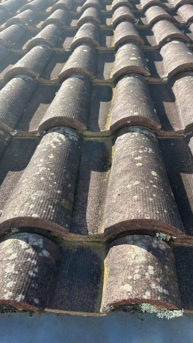 Après un démoussage en profondeur et un nettoyage haute pression, les tuiles ont reçu un hydrofuge incolore assurant une protection durable contre l’humidité, les infiltrations et le retour des mousses.