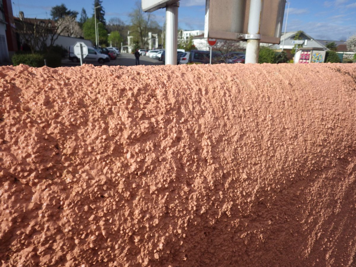 Après avoir appliqué un nettoyant sur le support, passage au nettoyage haute pression et eau chaude pour éliminer les mousses, saletés et la pollution sur la totalité du mur de clôture.