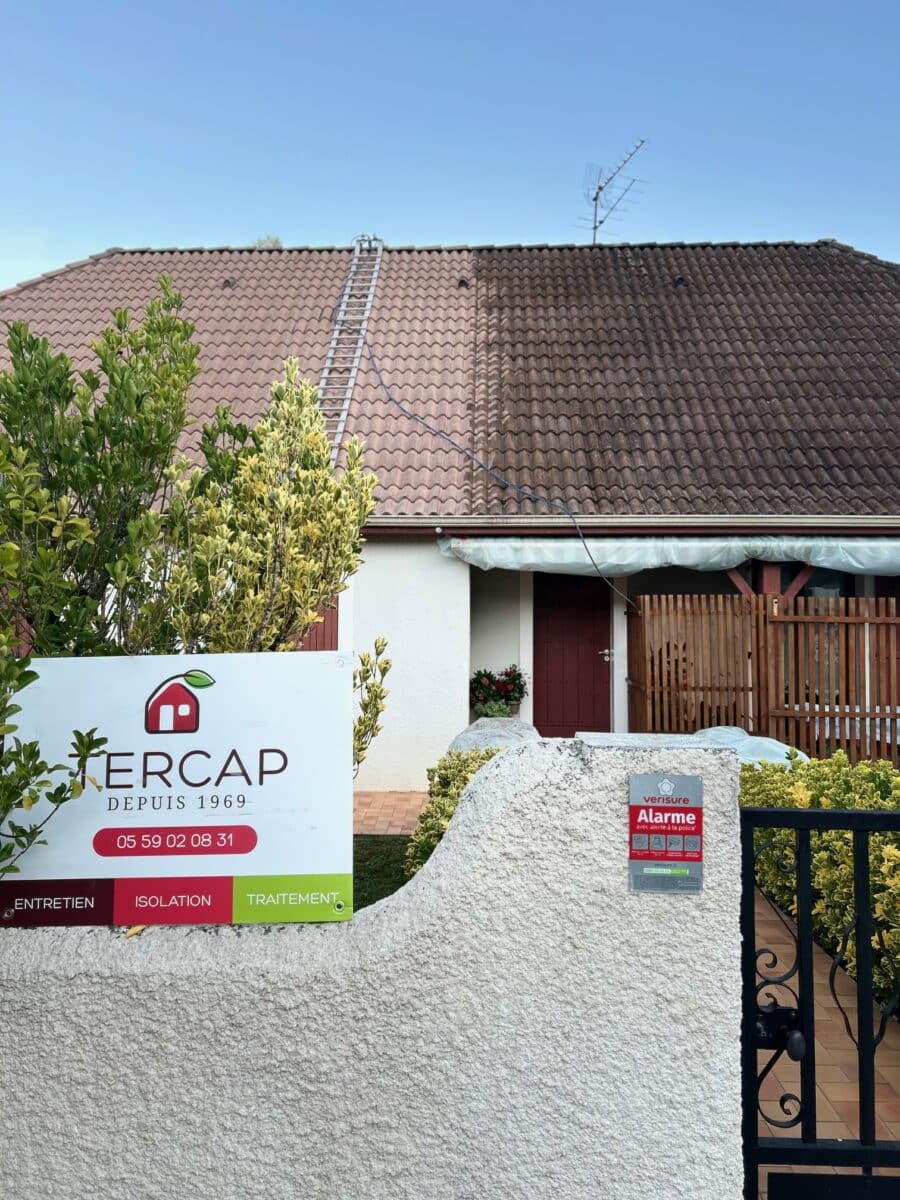 À Gan, dans les Pyrénées-Atlantiques, Tercap Rénovation est intervenue pour un nettoyage complet des tuiles suivi de l’application d’un hydrofuge professionnel.