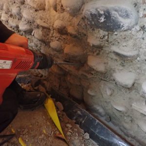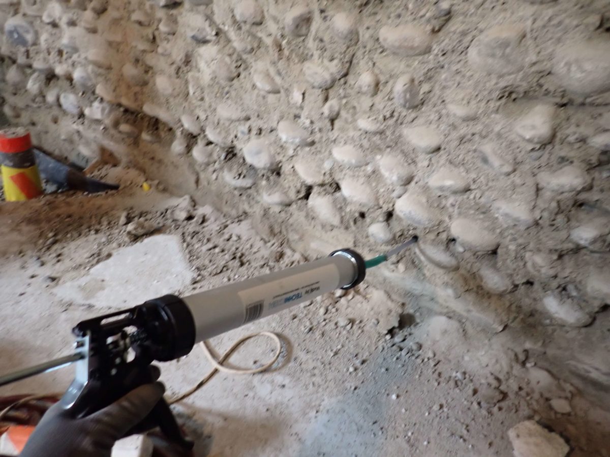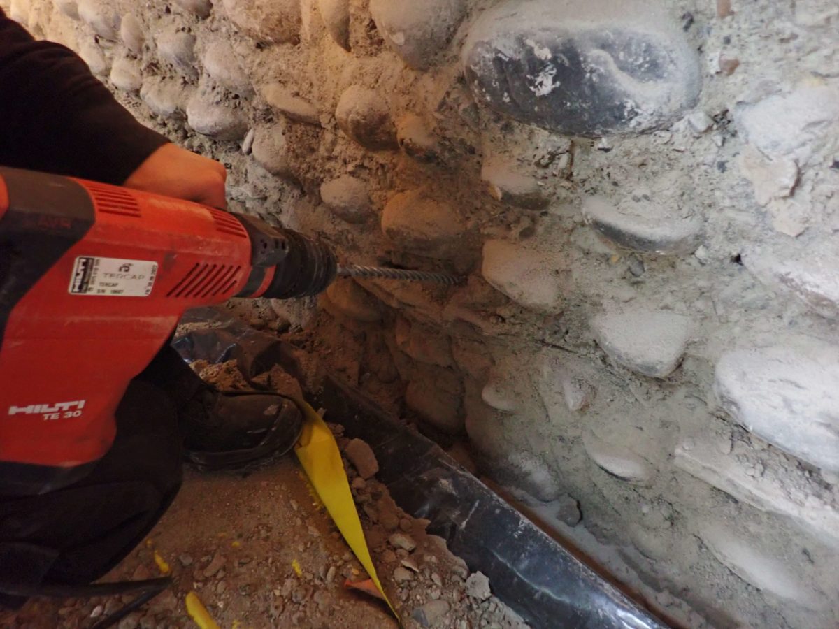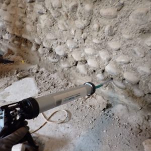 Afin de lutter contre les remontées d’humidité dans les murs de cette copropriété de Pau, les techniciens spécialisés de Tercap sont intervenus pour injecter un fluide hydrofuge qui crée une barrière active contre les remontées capillaires.