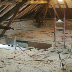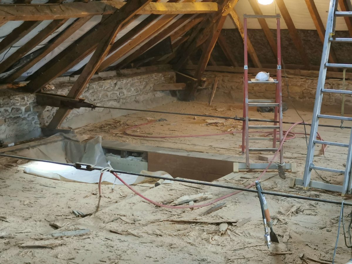Les techniciens de Tercap viennent d’intervenir pour protéger la charpente de cette maison près d’Oloron contre les insectes à larves xylophages.