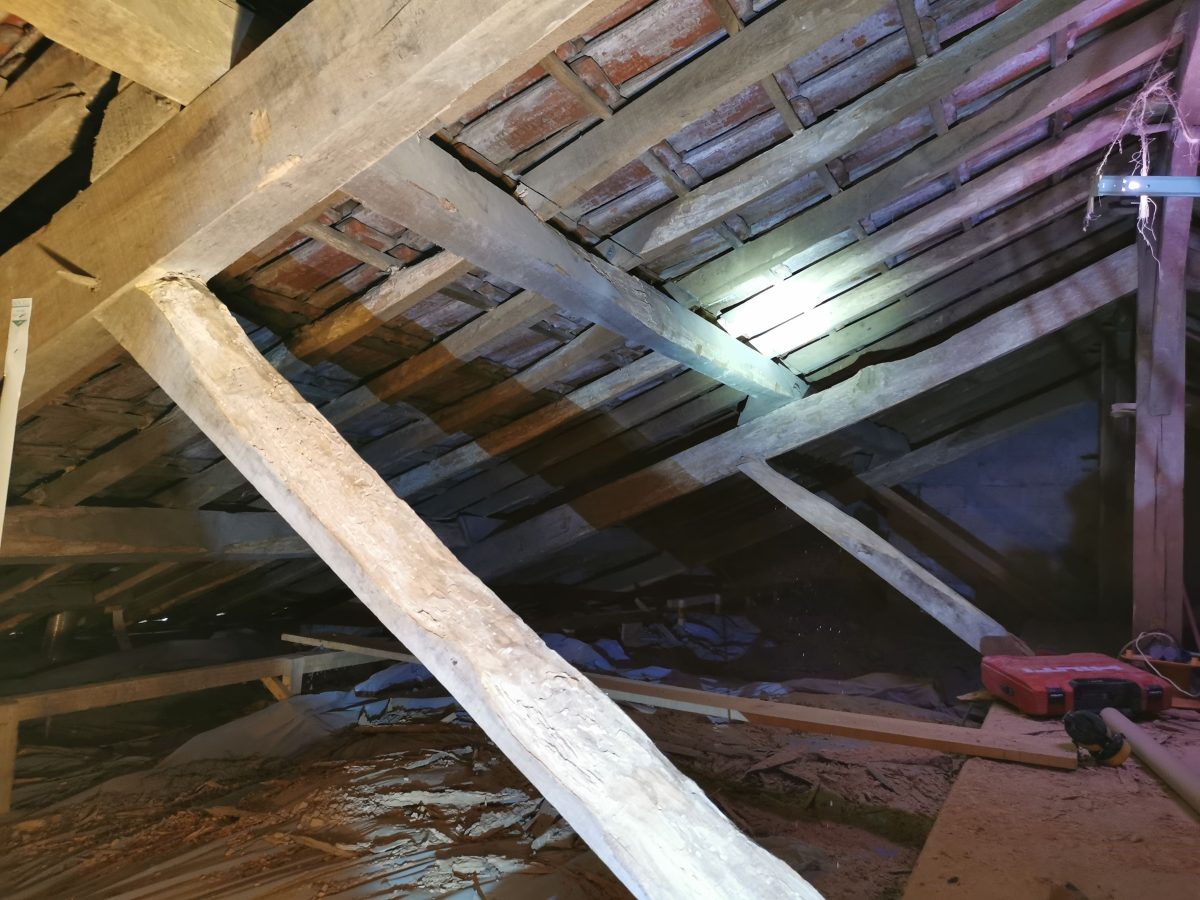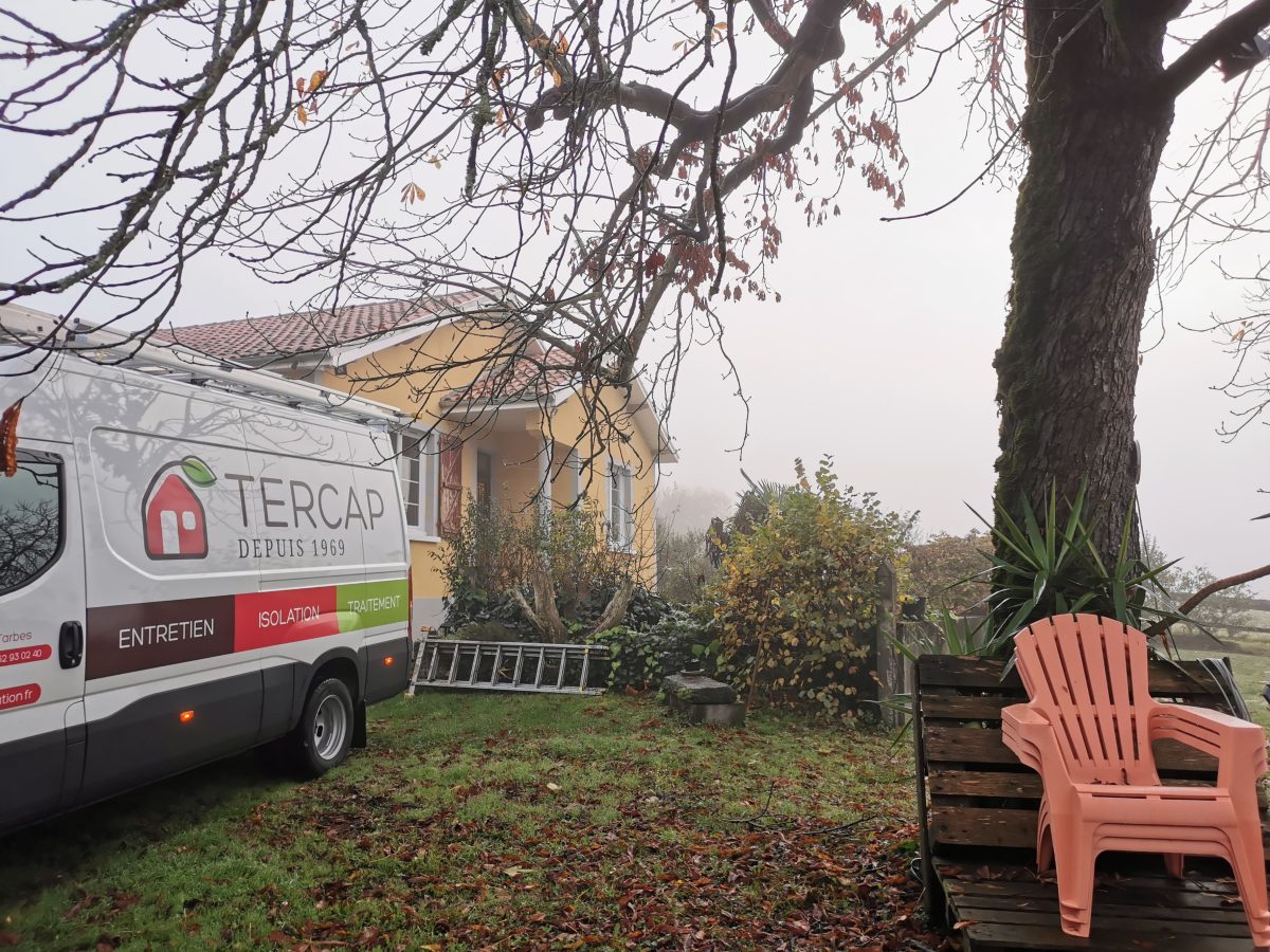 Pour protéger la charpente de cette maison de Balansun, les techniciens spécialisés de TERCAP sont intervenus pour traiter les bois contre les insectes à larves xylophages. Après perçage des bois, le produit actif est directement injecté au coeur du bois pour une efficacité durable du traitement.