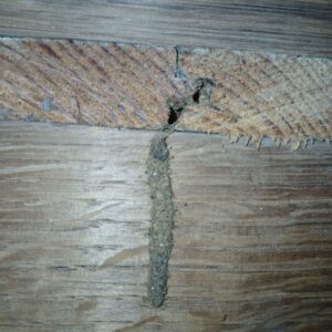 Les termites agissent souvent en silence, attaquant les parties cachées des bâtiments. Suite à une inspection minutieuse réalisée par TERCAP, la présence de termites a été confirmée dans plusieurs zones de la maison, menaçant l’intégrité de la charpente et des éléments en bois. Le diagnostic précis a permis de déterminer l’étendue des dégâts et de définir une stratégie d’intervention efficace.